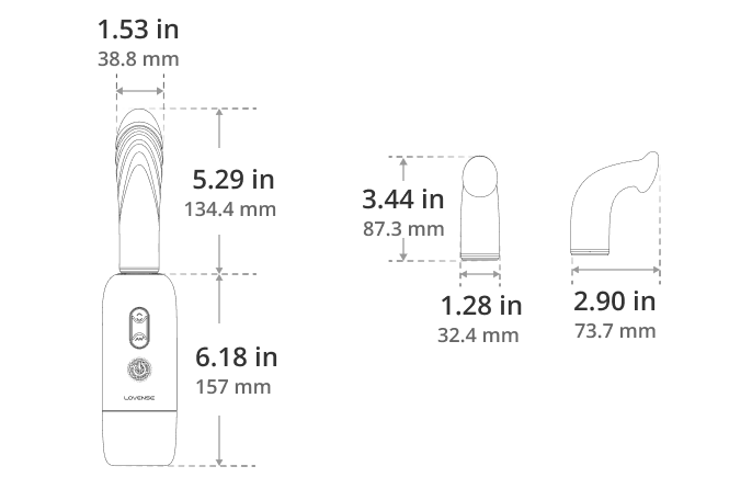 El dildo recto es un consolador con empuje y vibración que soporta empuje, vibración y calentamiento (ya sea por separado o todos a la vez). El dildo curvo solo soporta empuje.